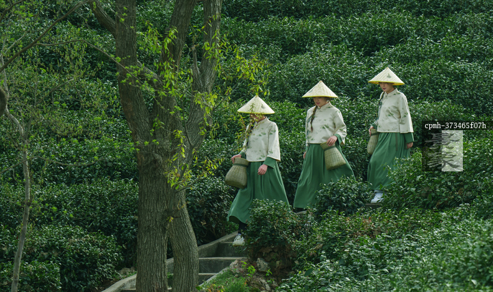 图片标题: 茶园里采茶的年轻女孩