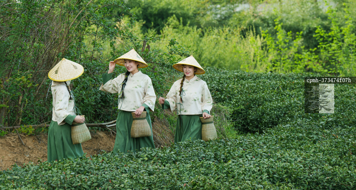 图片标题: 年轻女人在茶园采茶