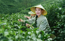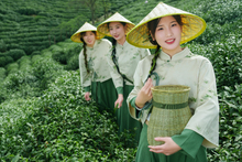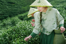 图片标题: 年轻女人在茶园采茶