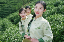 图片标题: 年轻女人在茶园采茶