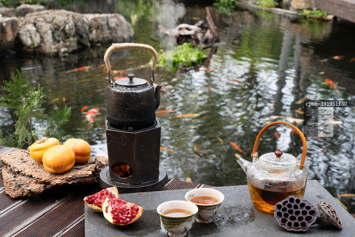 图片标题: 秋日池塘边围炉煮茶