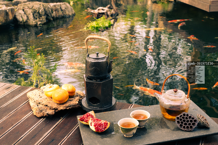 图片标题: 秋日池塘边围炉煮茶