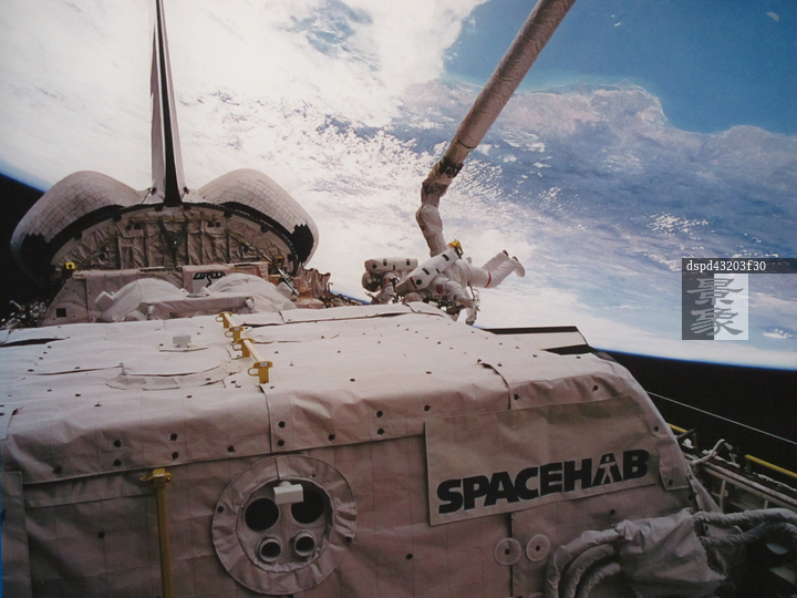 图片标题:     太空梭奋进号的航天员在舱外工作者