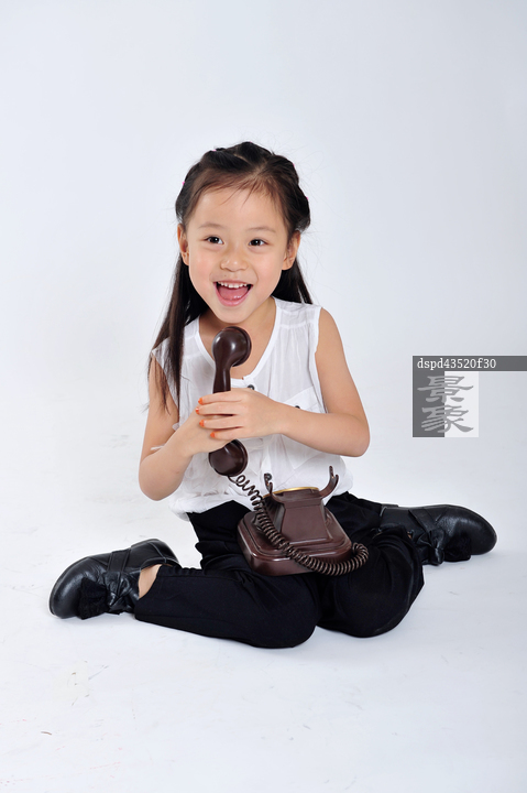 图片标题: 拿着电话机的女孩