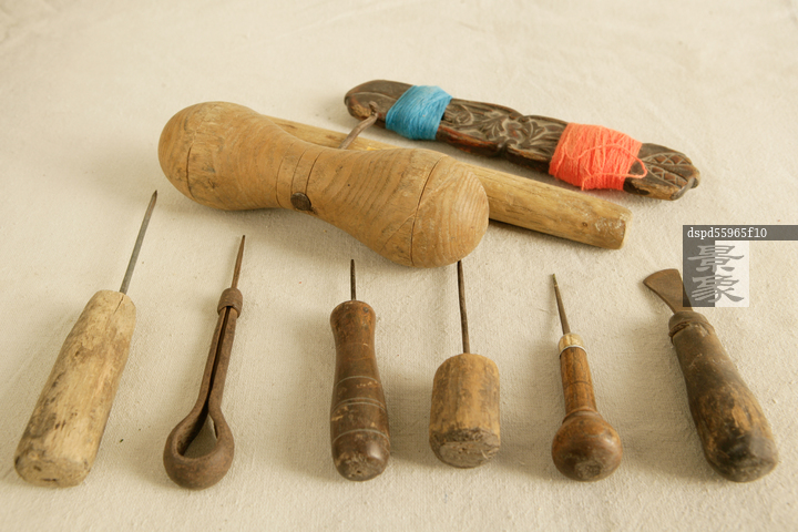 图片标题: 静物老式做鞋工具
