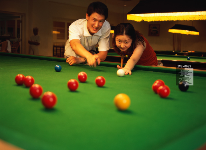 图片标题: 东方情侣在室内打台球