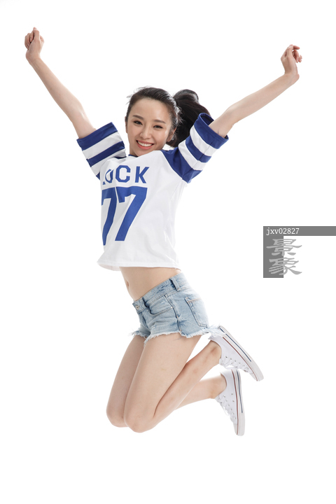 图片标题: 年轻女人跳跃