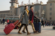 图片标题: 青年女人在站前广场
