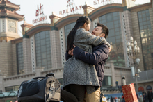 图片标题: 青年男女在站前广场