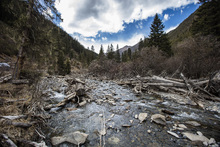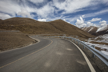 图片标题: 四川省 壤塘县 香拉东吉圣山 山路 雪山 蓝天