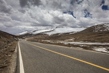 图片标题: 四川省 壤塘县 德勒山 山路 雪山 蓝天