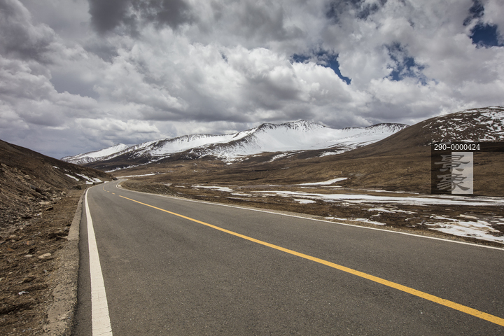 图片标题: 四川省 壤塘县 德勒山 山路 雪山 蓝天