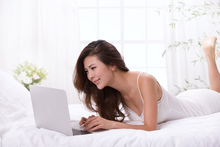 图片标题: 一个年轻女人躺在床上