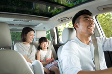 图片标题: 幸福的一家三口驾车出游