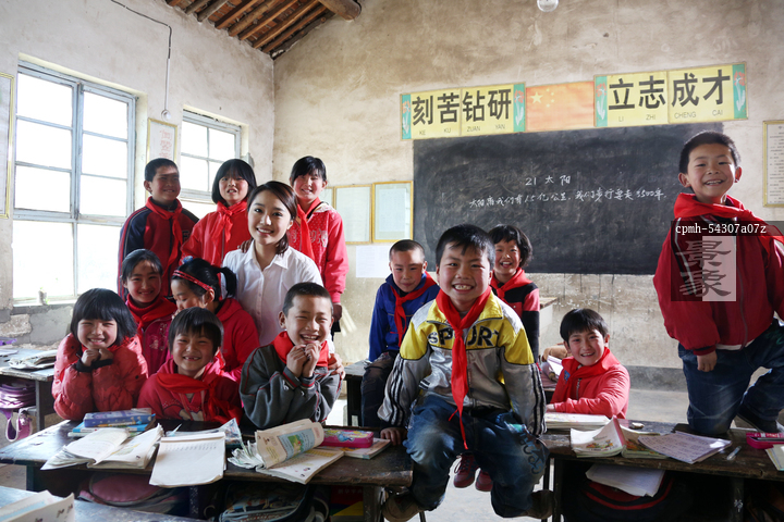 图片标题: 乡村小学生和老师在教室里