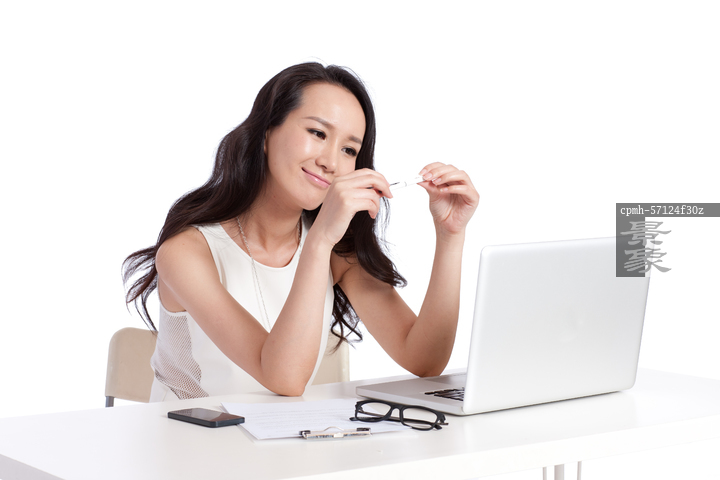 图片标题: 青年女白领使用笔记本电脑