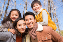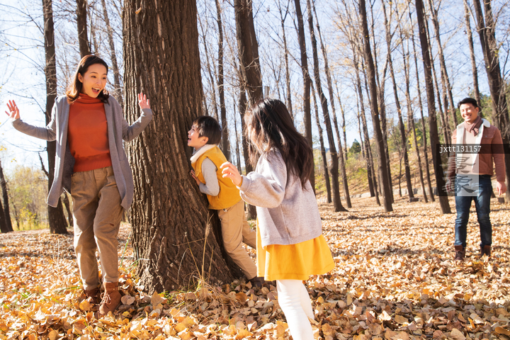 图片标题: 欢乐家庭在户外玩捉迷藏游戏