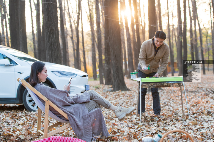 图片标题: 青年夫妇在野外烧烤
