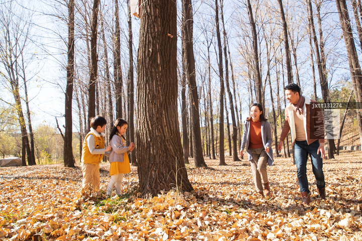 图片标题:     欢乐家庭在户外玩捉迷藏游戏