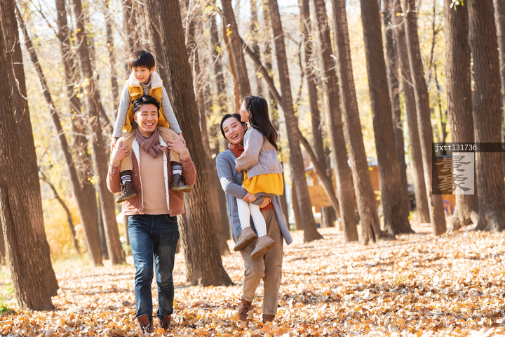 图片标题:     幸福家庭在树林里玩耍