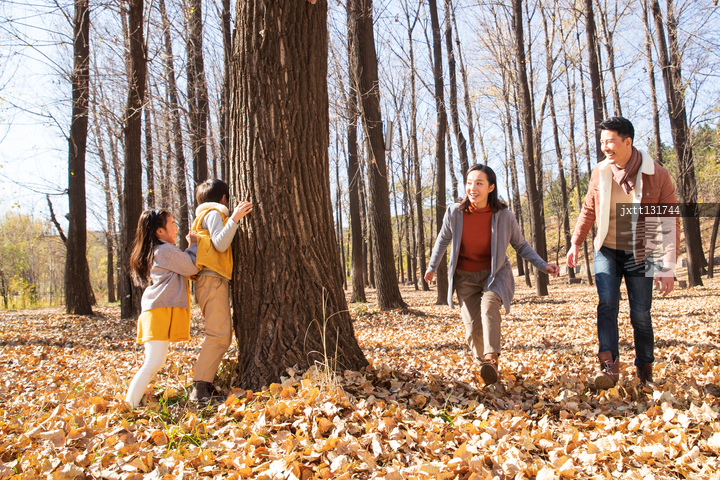 图片标题:     欢乐家庭在户外玩捉迷藏游戏