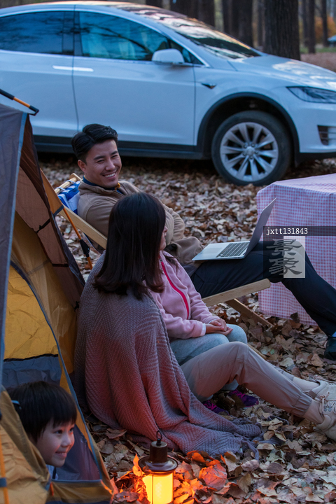 图片标题: 快乐家庭在野外露营