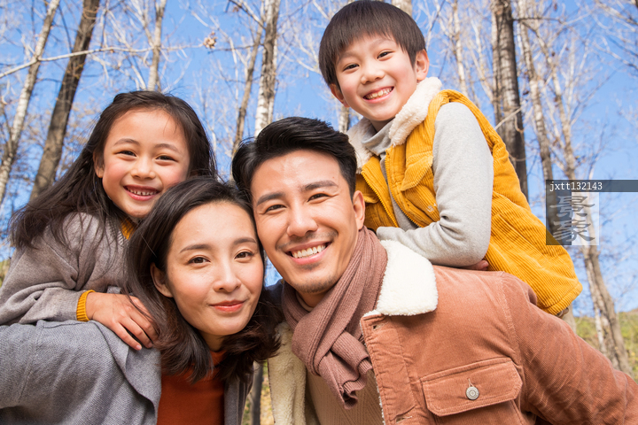 图片标题: 幸福家庭在树林里玩耍