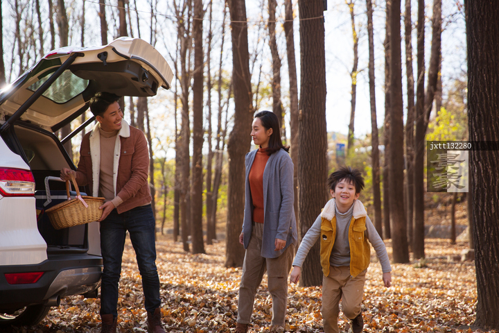 图片标题: 幸福家庭驾车郊游