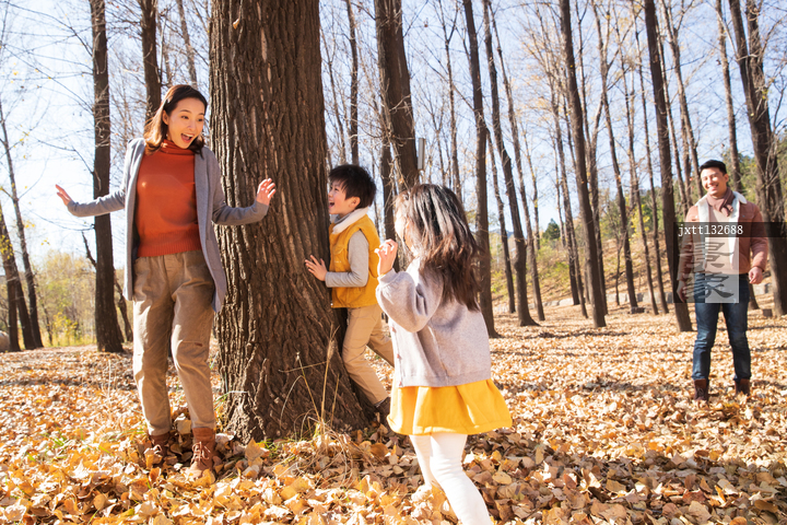 图片标题:     欢乐家庭在户外玩捉迷藏游戏
