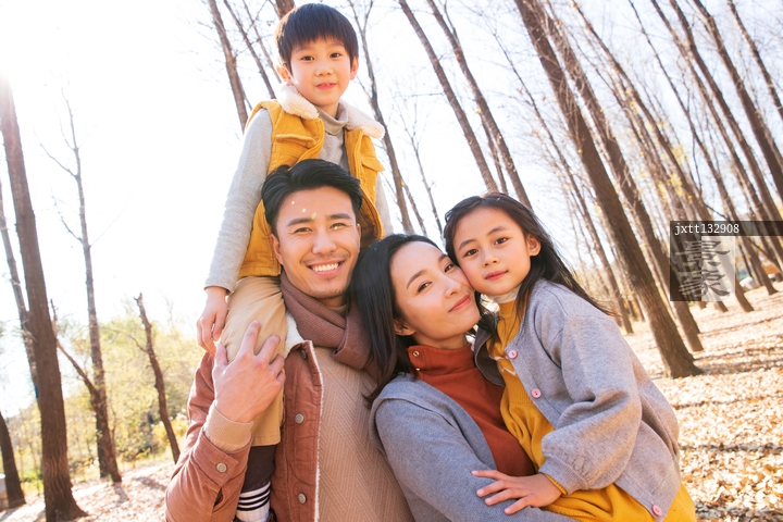 图片标题:     幸福家庭在树林里玩耍