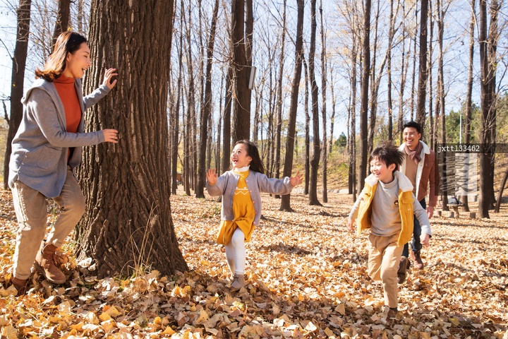图片标题:     欢乐家庭在户外玩捉迷藏游戏