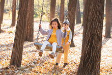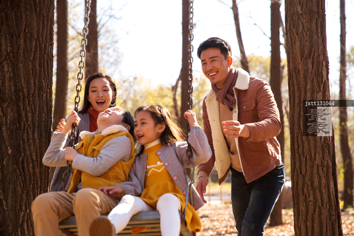 图片标题: 快乐家庭在户外荡秋千
