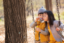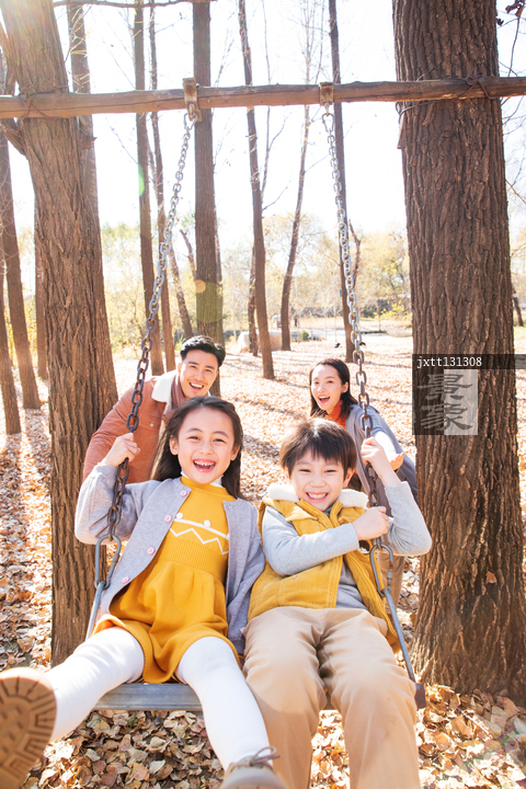 图片标题: 快乐家庭在户外荡秋千
