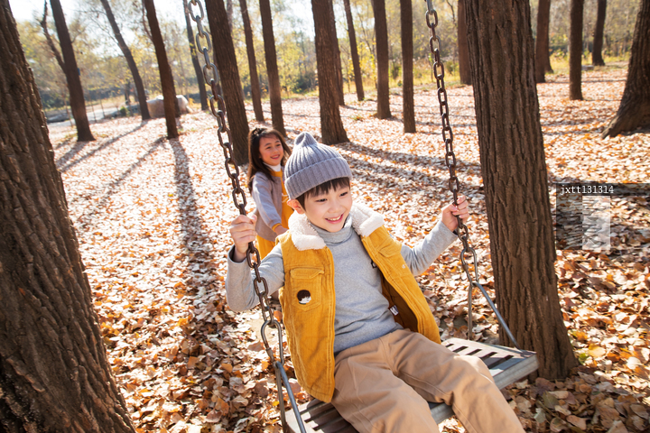 图片标题: 快乐儿童在户外荡秋千