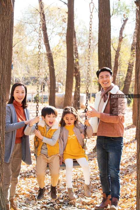 图片标题: 快乐家庭在户外荡秋千