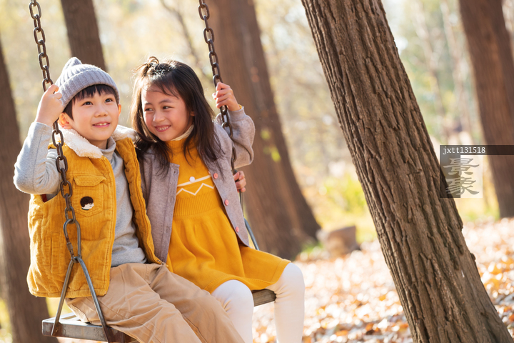 图片标题: 快乐儿童在户外荡秋千