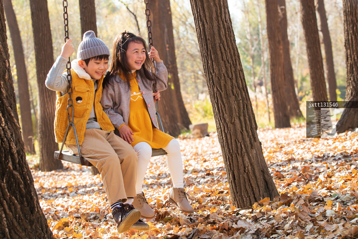 图片标题: 快乐儿童在户外荡秋千