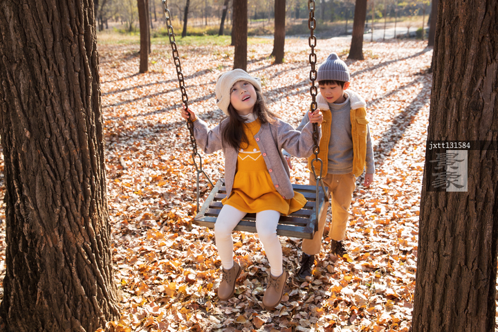 图片标题: 快乐儿童在户外荡秋千