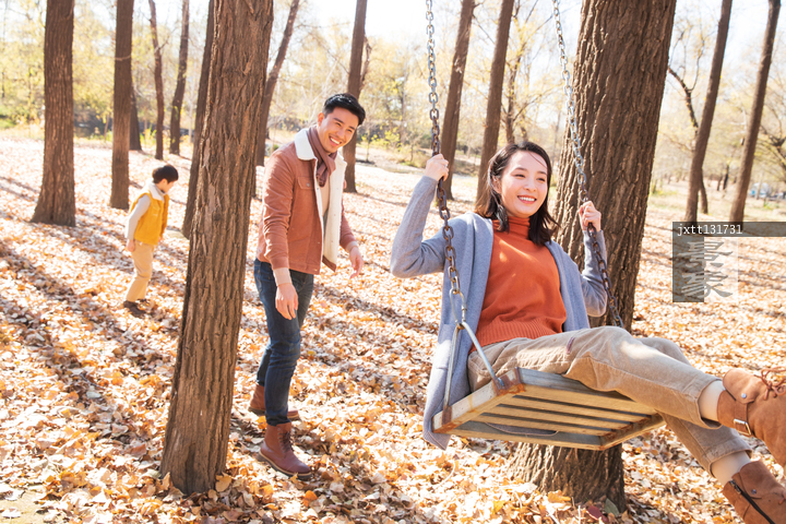 图片标题:     快乐家庭在户外荡秋千