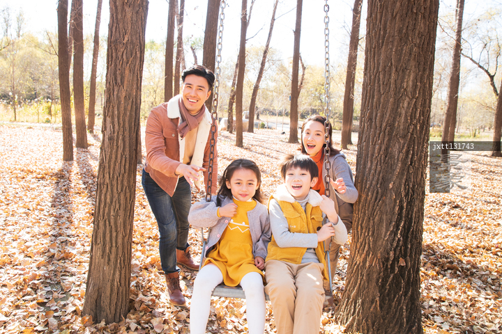 图片标题: 快乐家庭在户外荡秋千