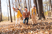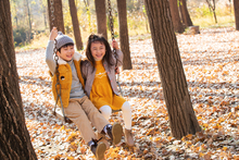 图片标题: 快乐儿童坐在秋千上吹泡泡