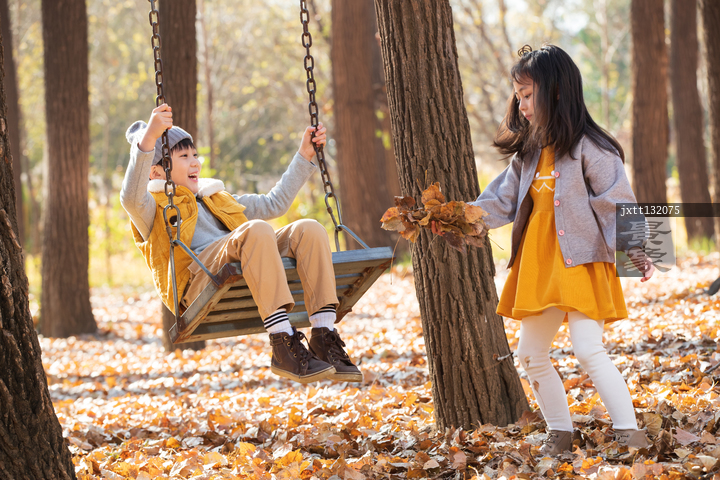 图片标题: 快乐儿童在户外荡秋千