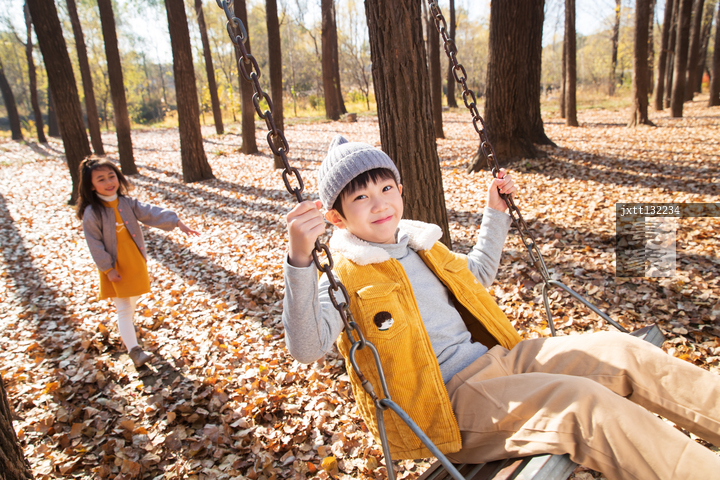 图片标题: 快乐儿童在户外荡秋千