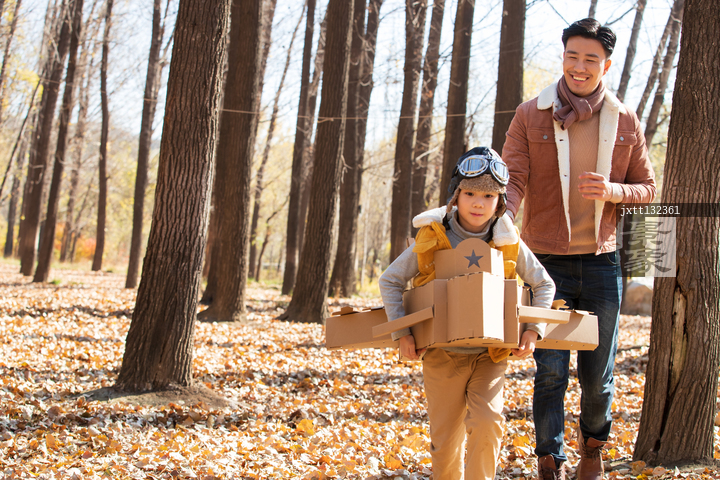图片标题:     年轻父亲带着孩子玩飞机游戏