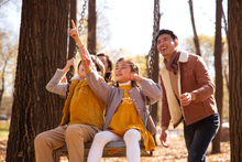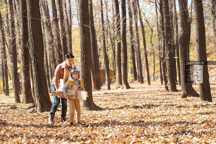 图片标题: 年轻父亲带着孩子玩飞机游戏