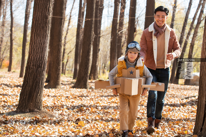 图片标题:     年轻父亲带着孩子玩飞机游戏