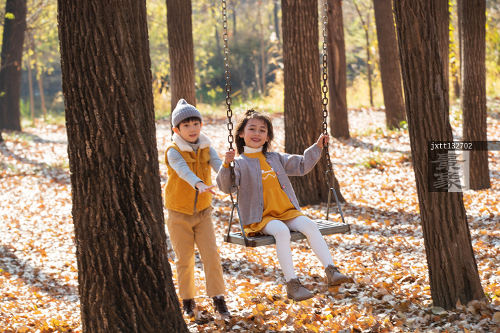图片标题: 快乐儿童在户外荡秋千