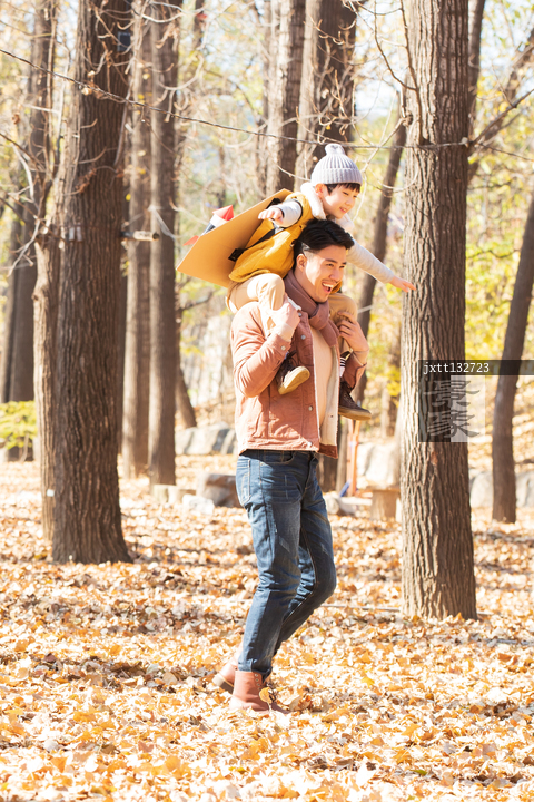 图片标题: 年轻父亲带着孩子玩飞机游戏