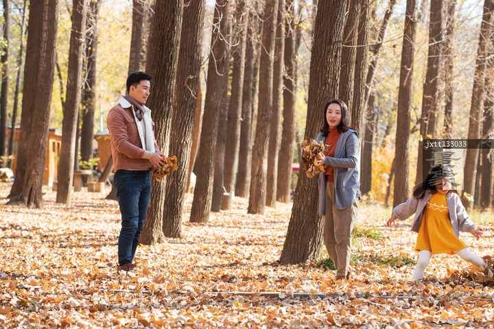 图片标题:     快乐家庭在树林里玩耍