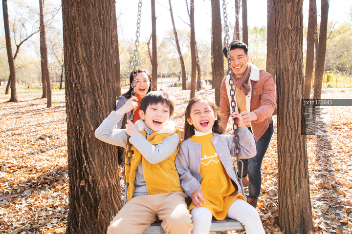 图片标题: 快乐家庭在户外荡秋千